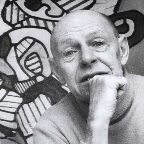 Jean Dubuffet (1901–1985) è stato uno dei teorici e artisti più provocatori del XX secolo, celebre soprattutto per aver coniato il termine Art Brut per descrivere un’arte grezza, spontanea e non filtrata dalla cultura accademica. Nato in una famiglia di mercanti di vino, Dubuffet abbandonò gli studi artistici tradizionali per dedicarsi all’attività di famiglia, tornando alla pittura solo a quarant’anni con lo spirito di un ribelle deciso a demolire i canoni estetici occidentali. La sua ricerca si concentrò sull’arte prodotta da autodidatti, bambini e malati psichiatrici, vedendo in essa una purezza e un’onestà che considerava soffocate nelle istituzioni ufficiali. Il suo stile si evolvette attraverso diverse fasi, tra cui la celebre serie “Hourloupe”, caratterizzata da intrecci di linee nere e colori piatti (rosso, blu e bianco) che creano mondi ipnotici e labirintici. Oltre alla pittura, si dedicò alla scultura monumentale e alla scrittura, lasciando un’impronta indelebile nella storia dell’arte contemporanea per aver ridefinito il concetto stesso di bellezza e per aver elevato l’istinto sopra la tecnica.