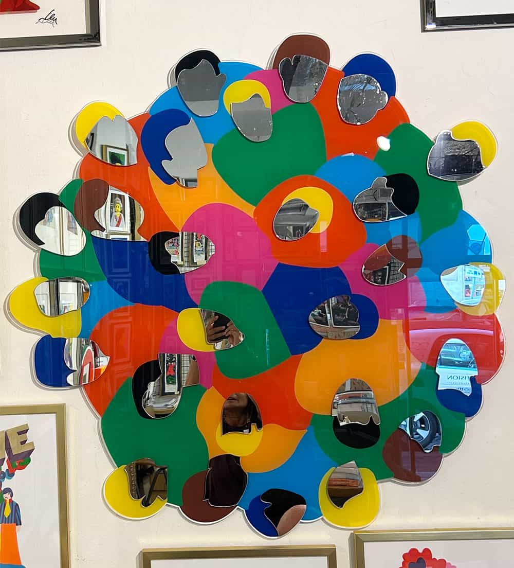 "Il volto degli altri" di Marco Lodola è una scultura in plexiglass e specchi che unisce gioia, magia e fantasia. L’opera esprime l’anima pop dell’artista, si sviluppa in una composizione circolare, in cui una moltitudine di figure stilizzate si intreccia armoniosamente, dando vita a un grande abbraccio collettivo.