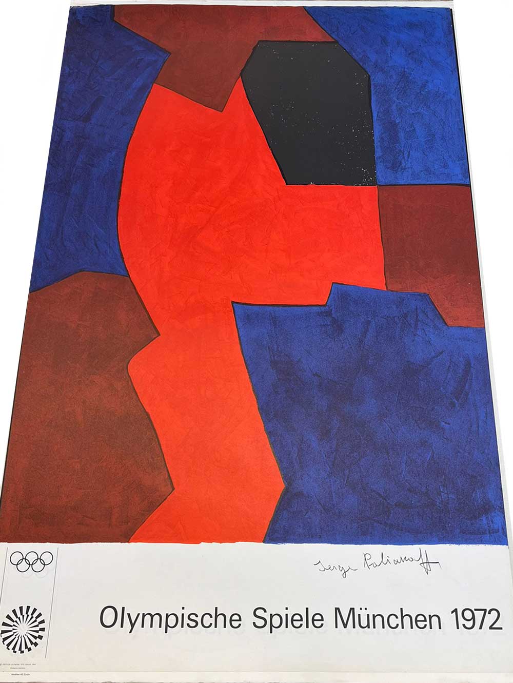 Il manifesto originale delle Olimpiadi di Monaco del 1972 di Serge Poliakoff, intitolato Composition bleue, rouge et noire, è un esempio straordinario di astrattismo geometrico applicato al contesto sportivo.