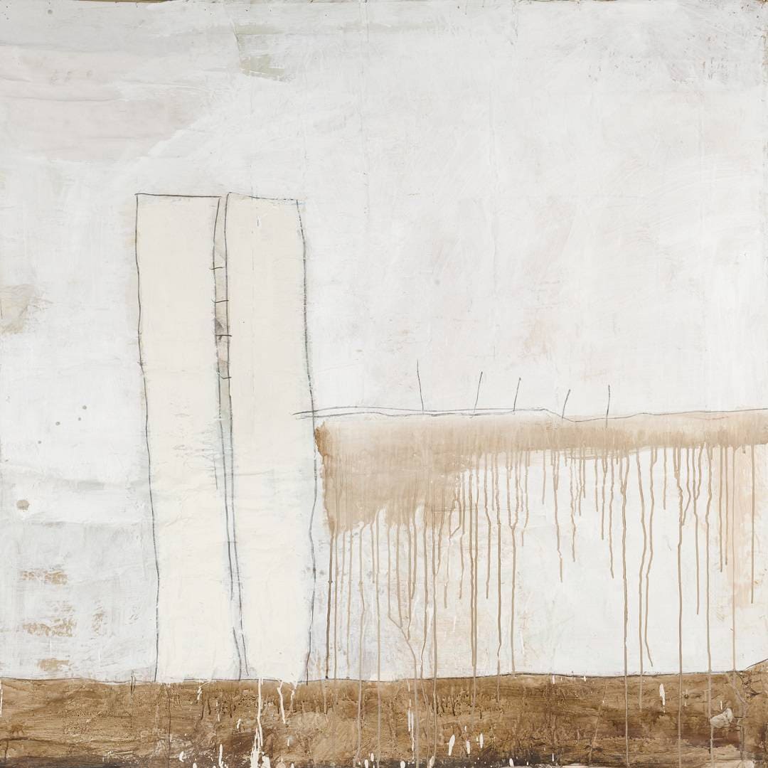 Sans Titre, 2008 di Didier Jacquier è un’opera che si fonda su un equilibrio minimale tra spazio vuoto, segno e materia. Il bianco domina la superficie, non come assenza ma come campo di respirazione, luogo del silenzio visivo.