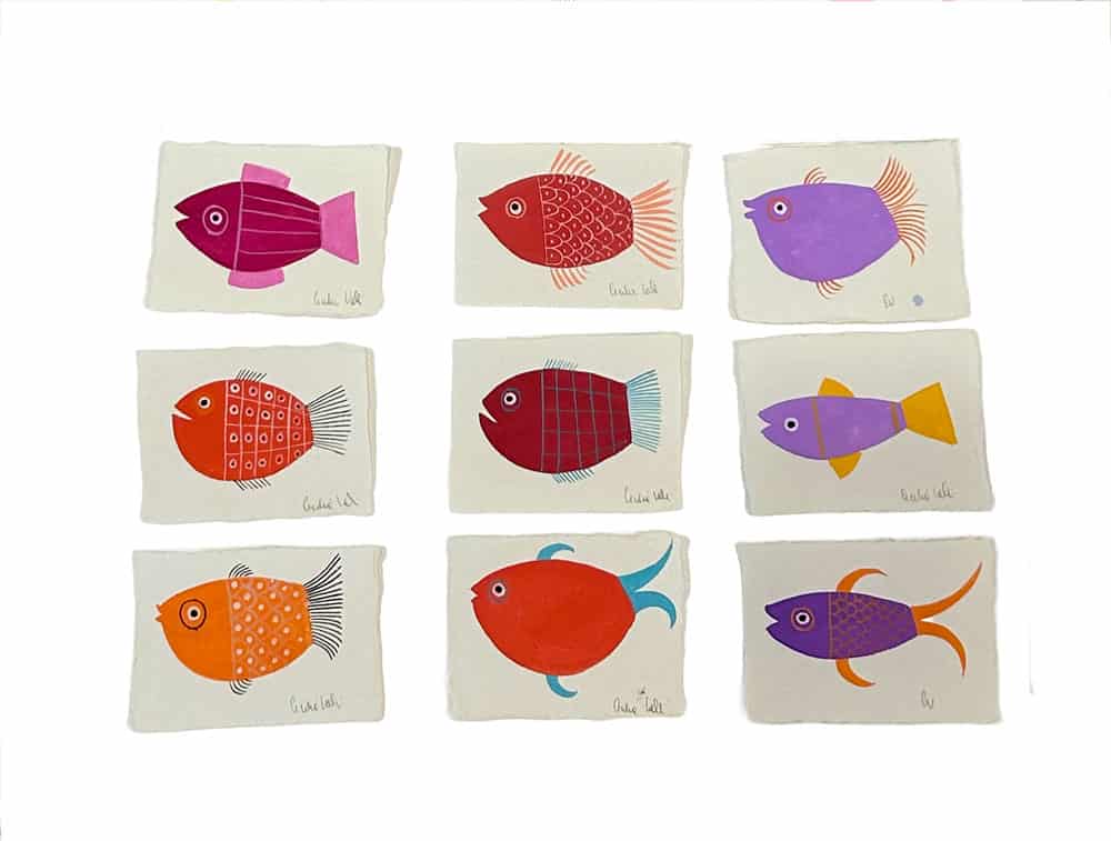Serie di disegni "Silenziosi Movimenti", realizzati con tecnica mista su carta. Ogni opera cattura l'essenza fluida e misteriosa dei pesci, fondendo tradizione e innovazione in composizioni uniche.
