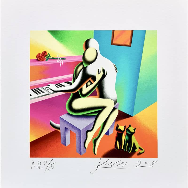 “The Right Notes” di Mark Kostabi è un’opera che unisce figure senza volto e simbolismi musicali in un’atmosfera surreale. Con colori intensi e stile inconfondibile, l’artista esplora armonia, emozioni e creatività, firmando un capolavoro dell’arte contemporanea.