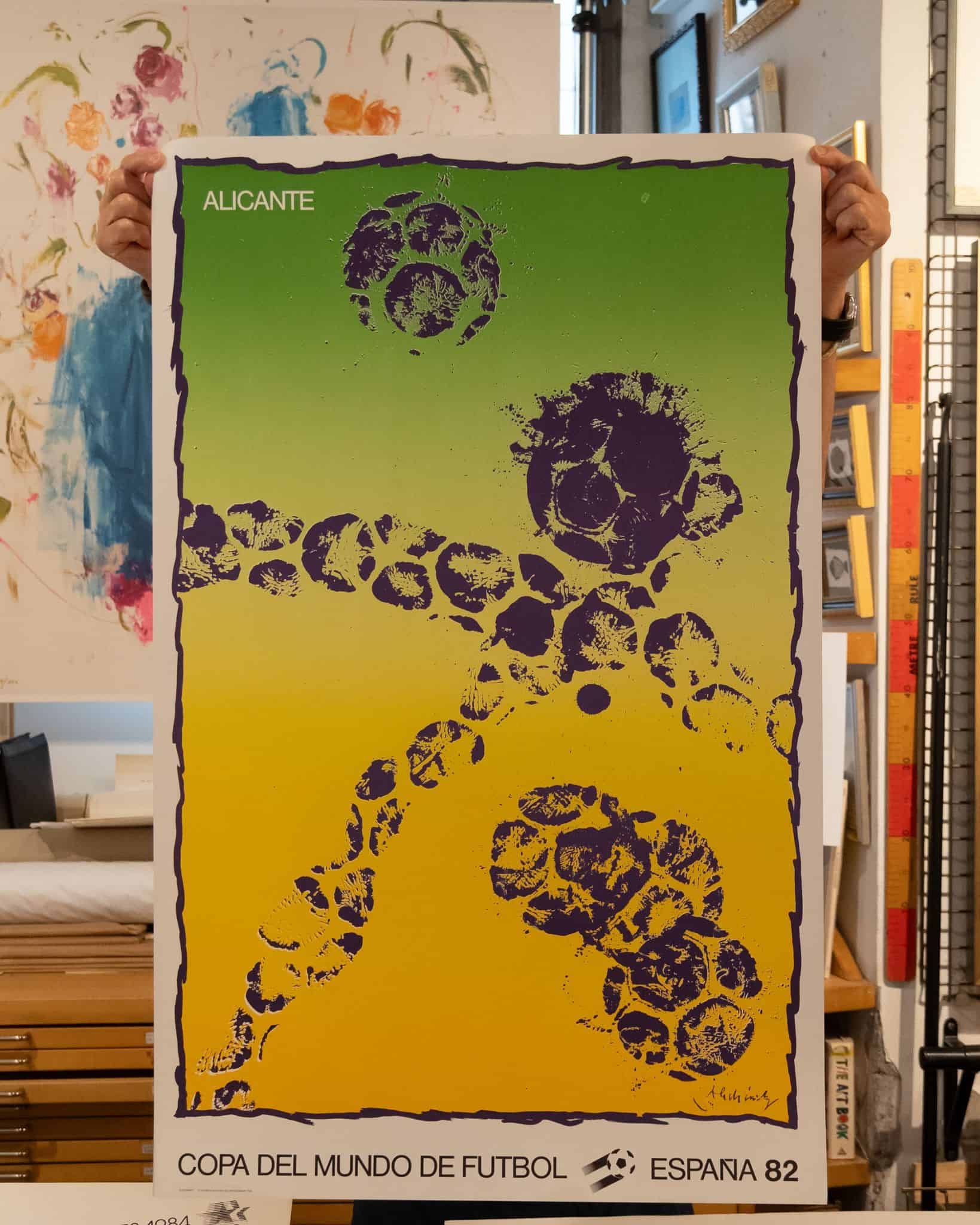 MONDIALI DI CALCIO ESPANA 1982 - MANIFESTO D'ARTE ORIGINALE DI ALICANTE PIERRE ALECHINSKY